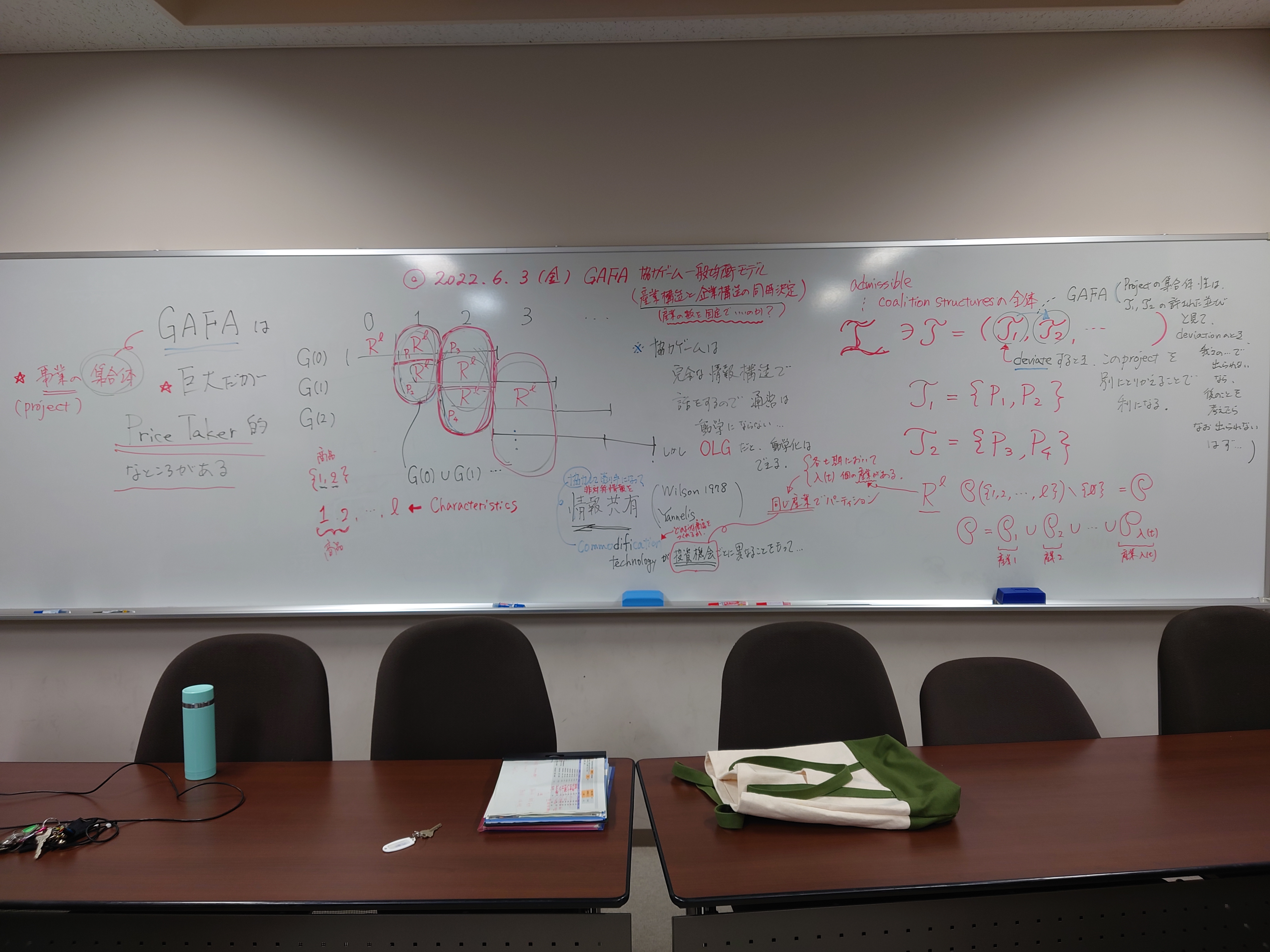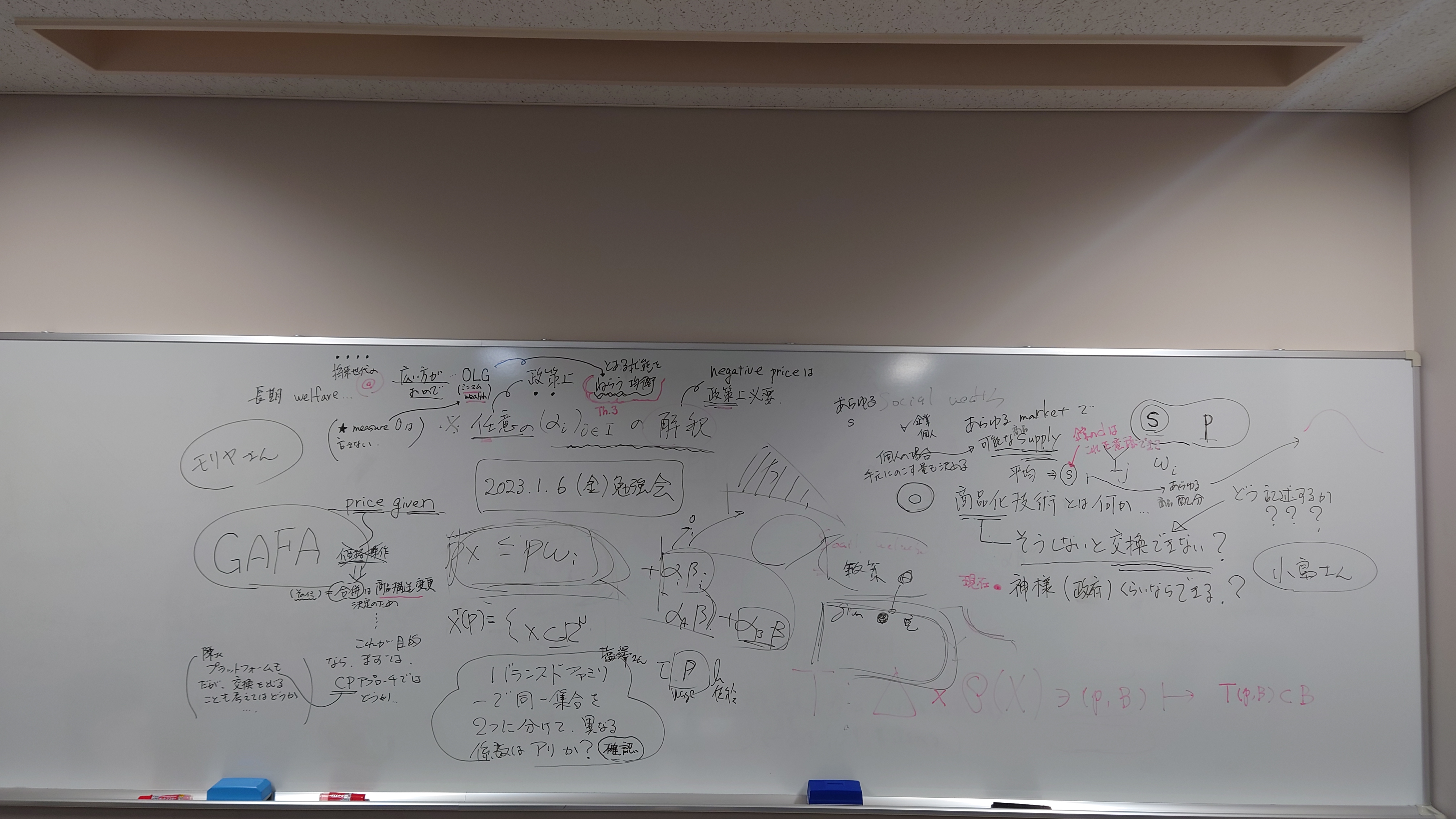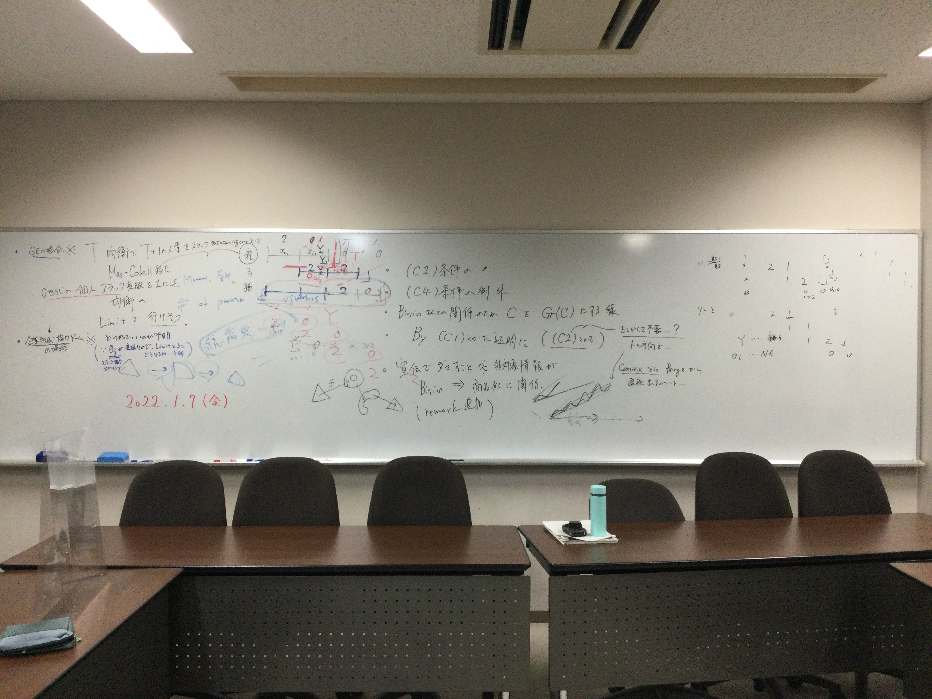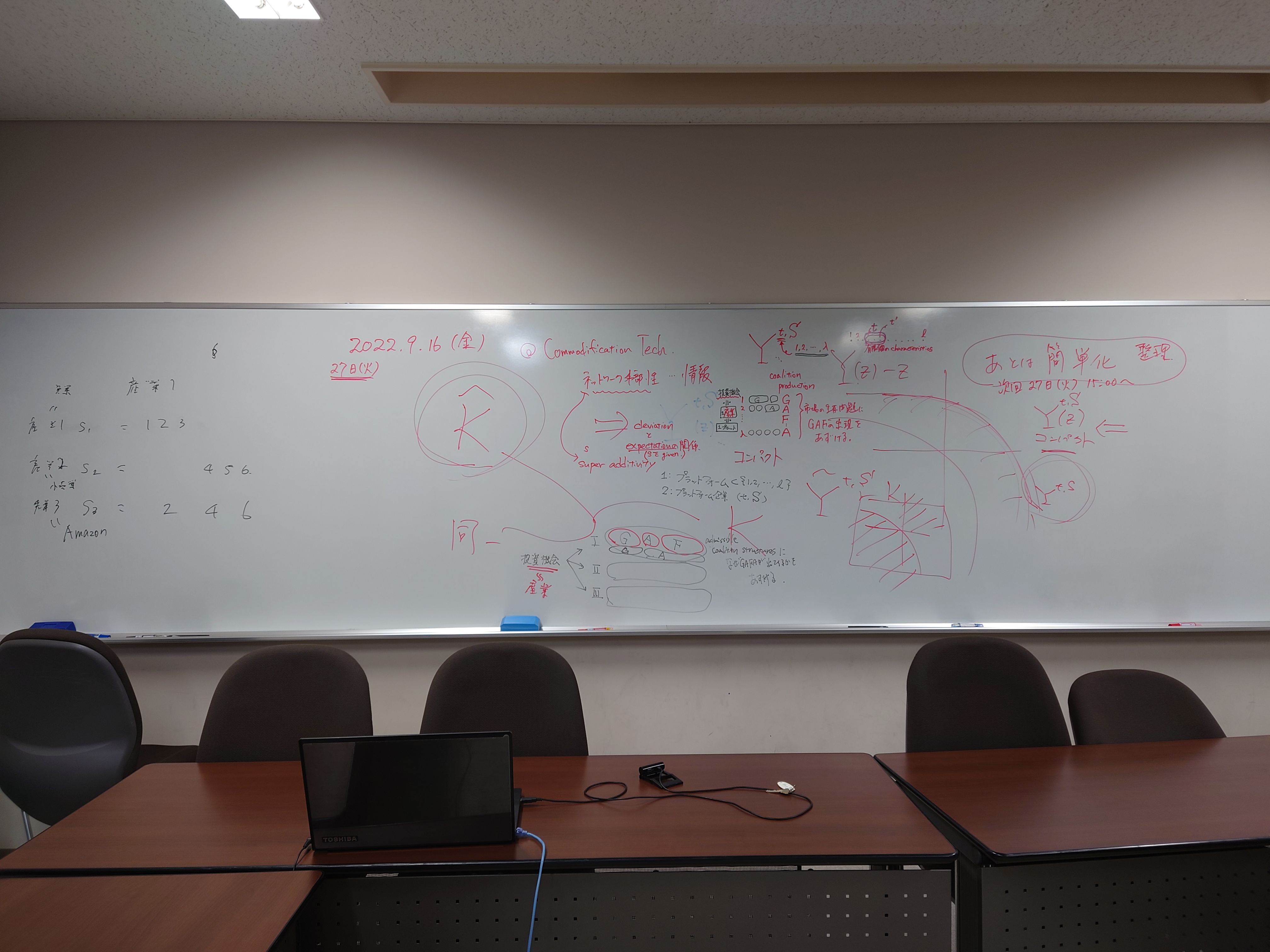 全体テーマについて話し合いました。板書をアップします。アフター(ポスト・ウィズ)コロナ時代、デジタル技術下のメディアの役割、商業化、オンラインでのコミュニケーションの役割等を踏まえた、人と人との距離感ということを(もう少し短めにまとめながら)、全体テーマを考えていきたいと思います。