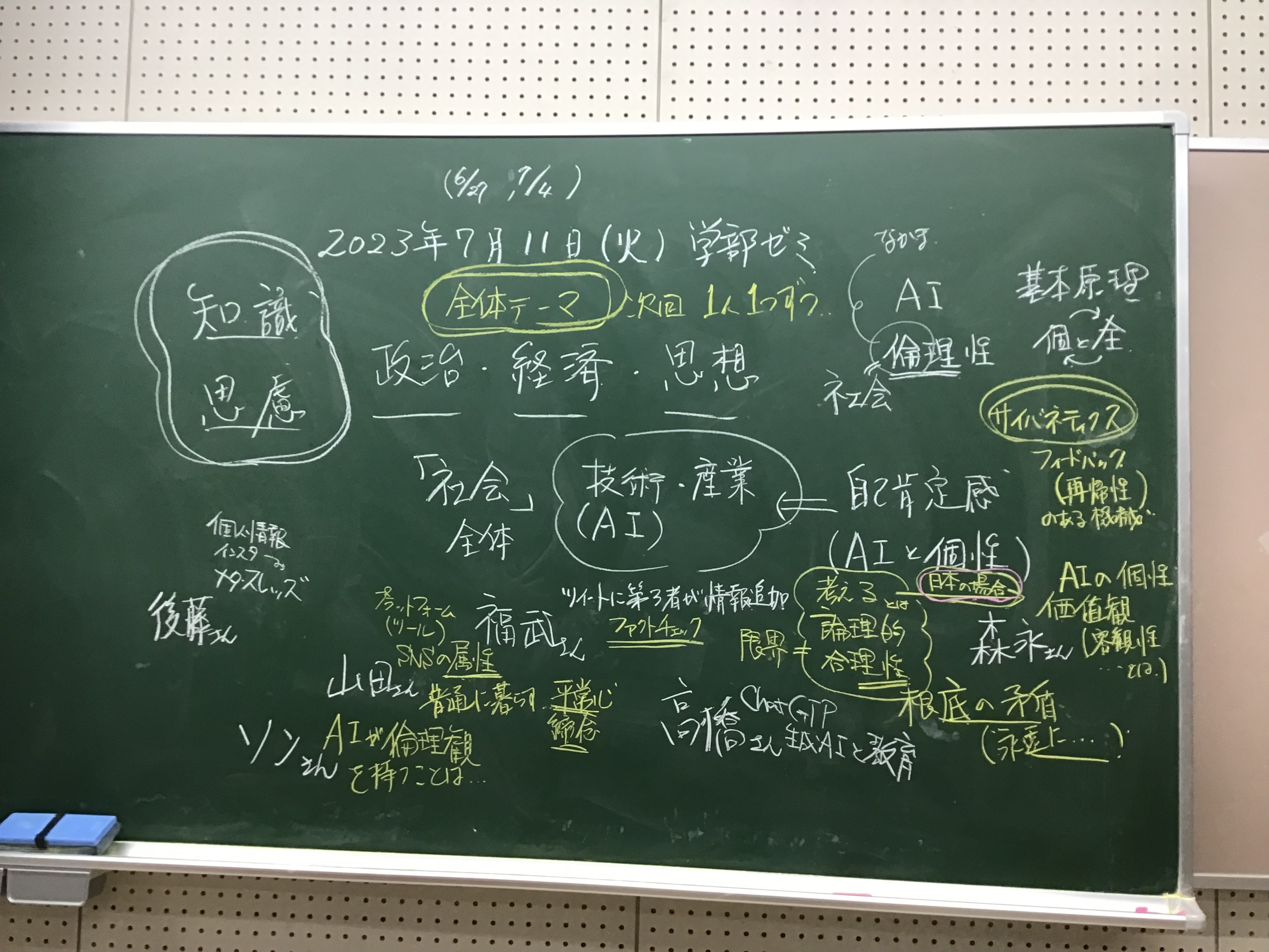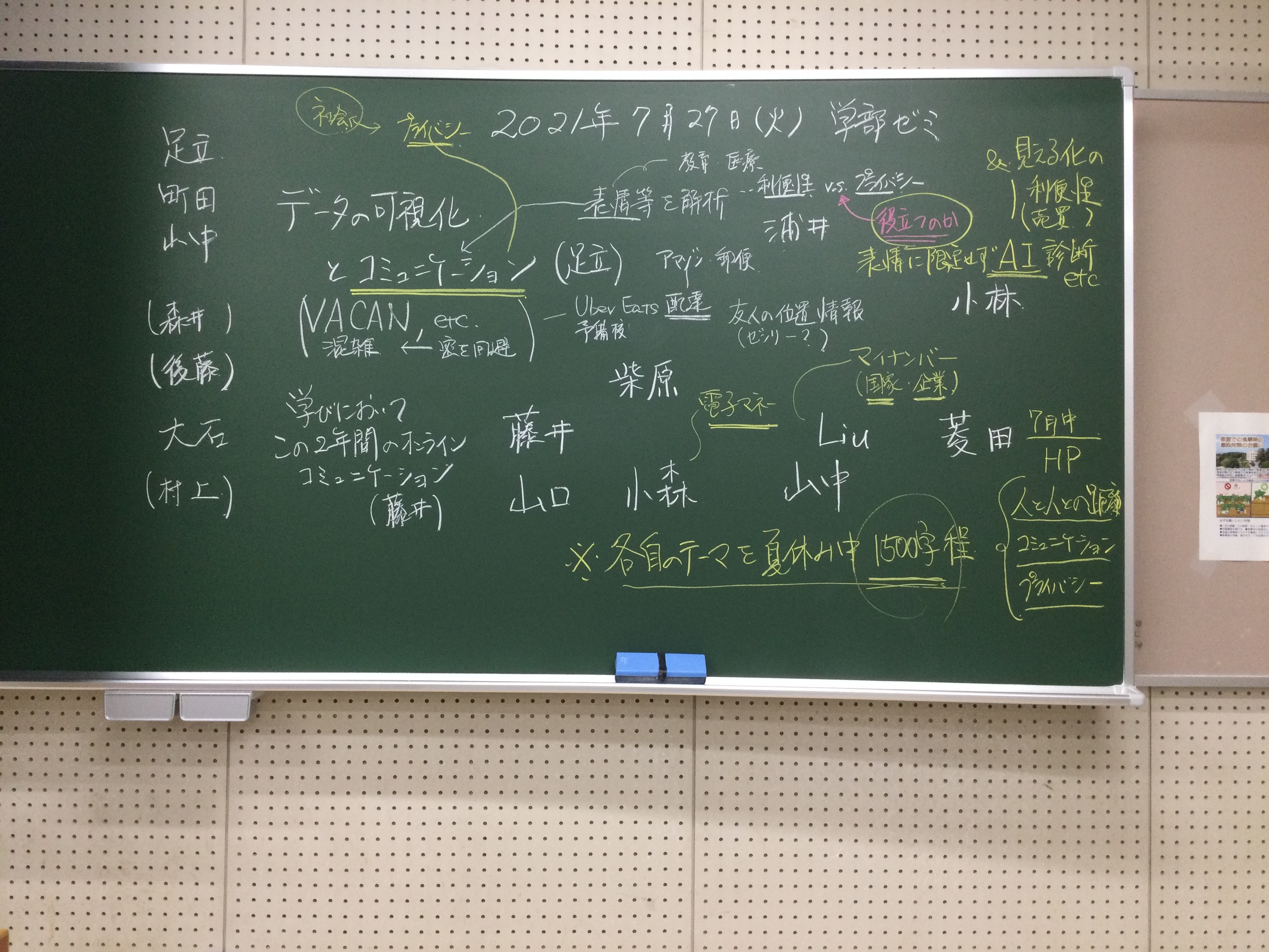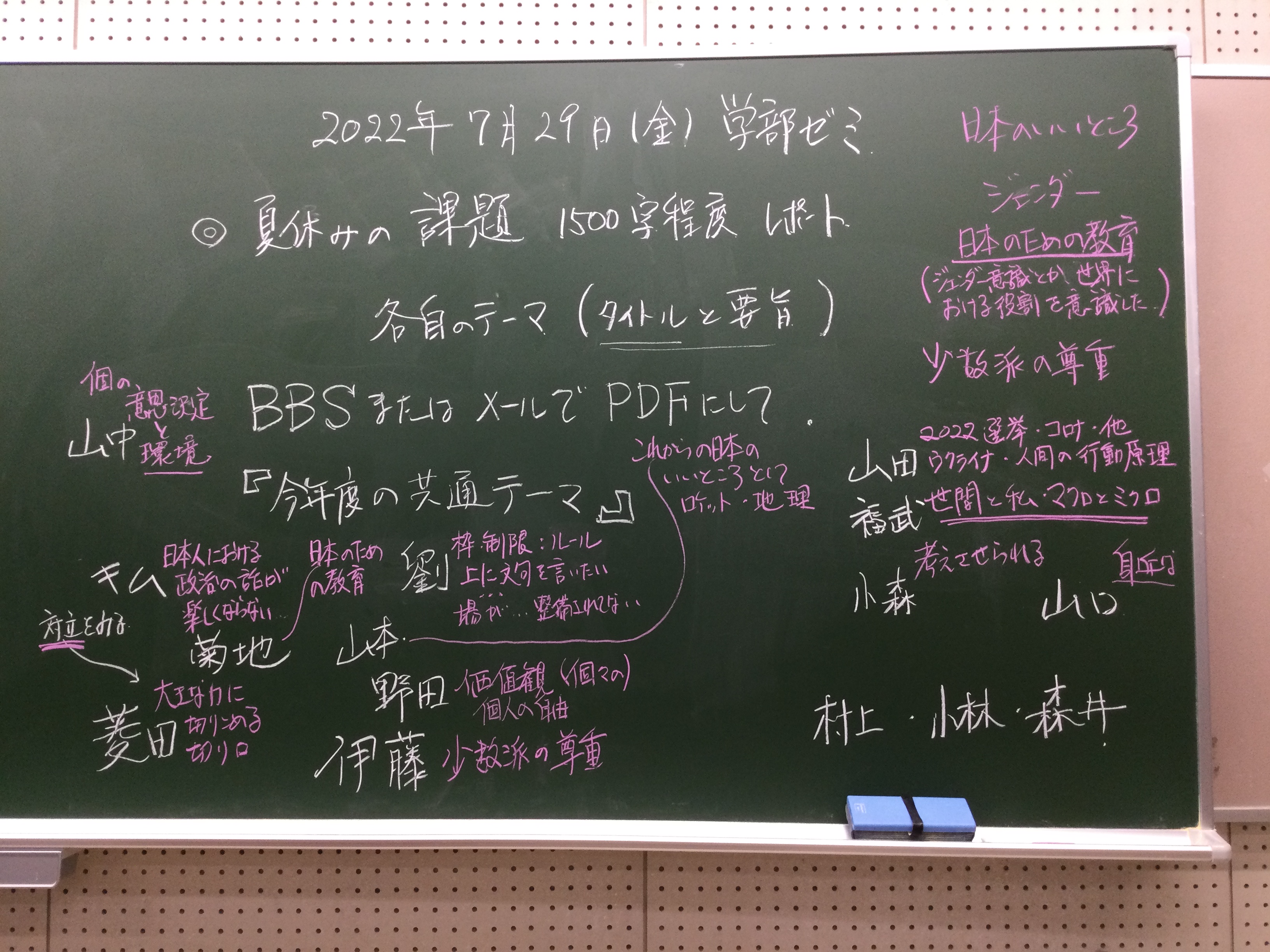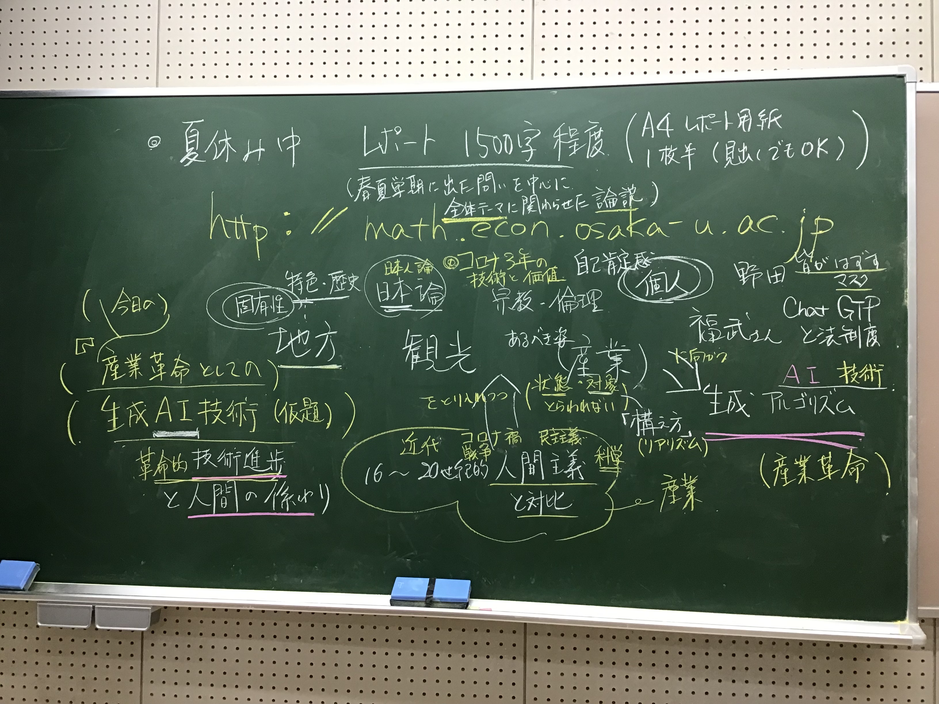 皆様お疲れ様でした。昨日の板書をアップします。夏休みの課題については、全体テーマを考えつつ、もう少し検討して、こちらで情報を追加していきますので、引き続き当該スレッドを確認して下さる