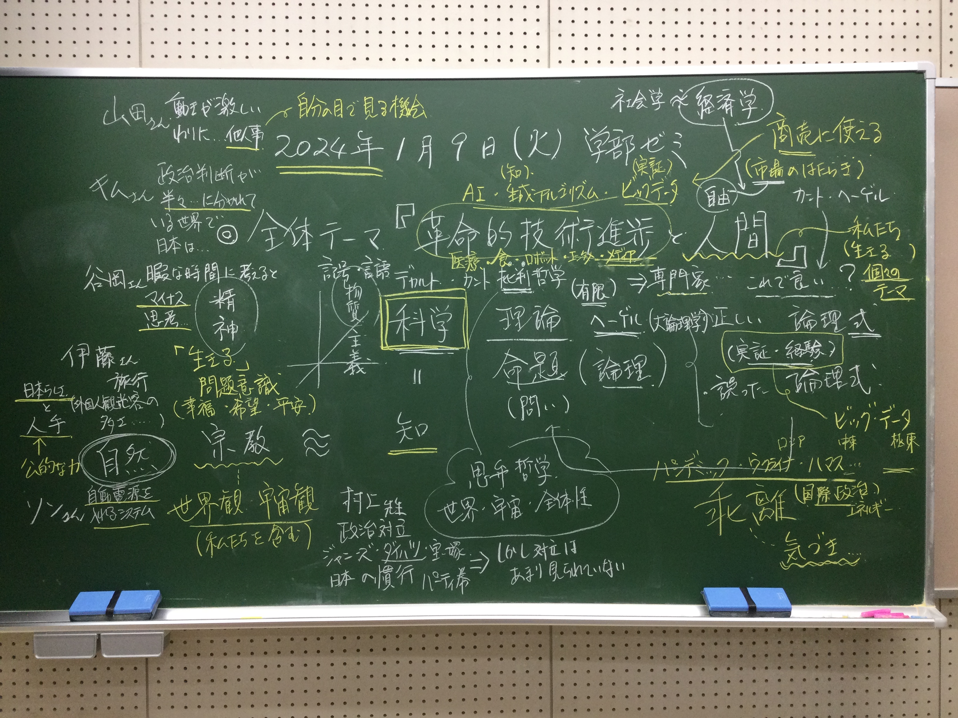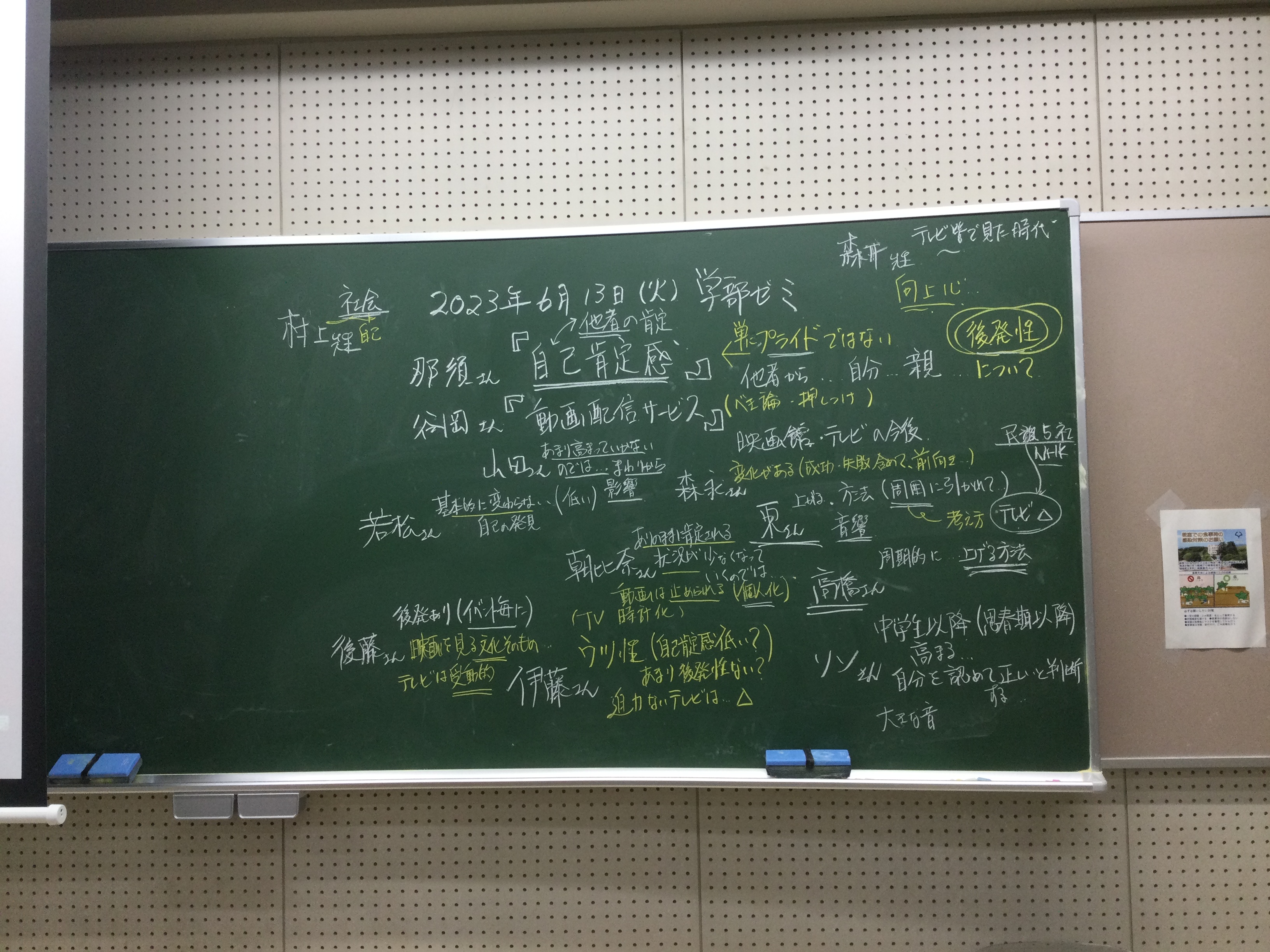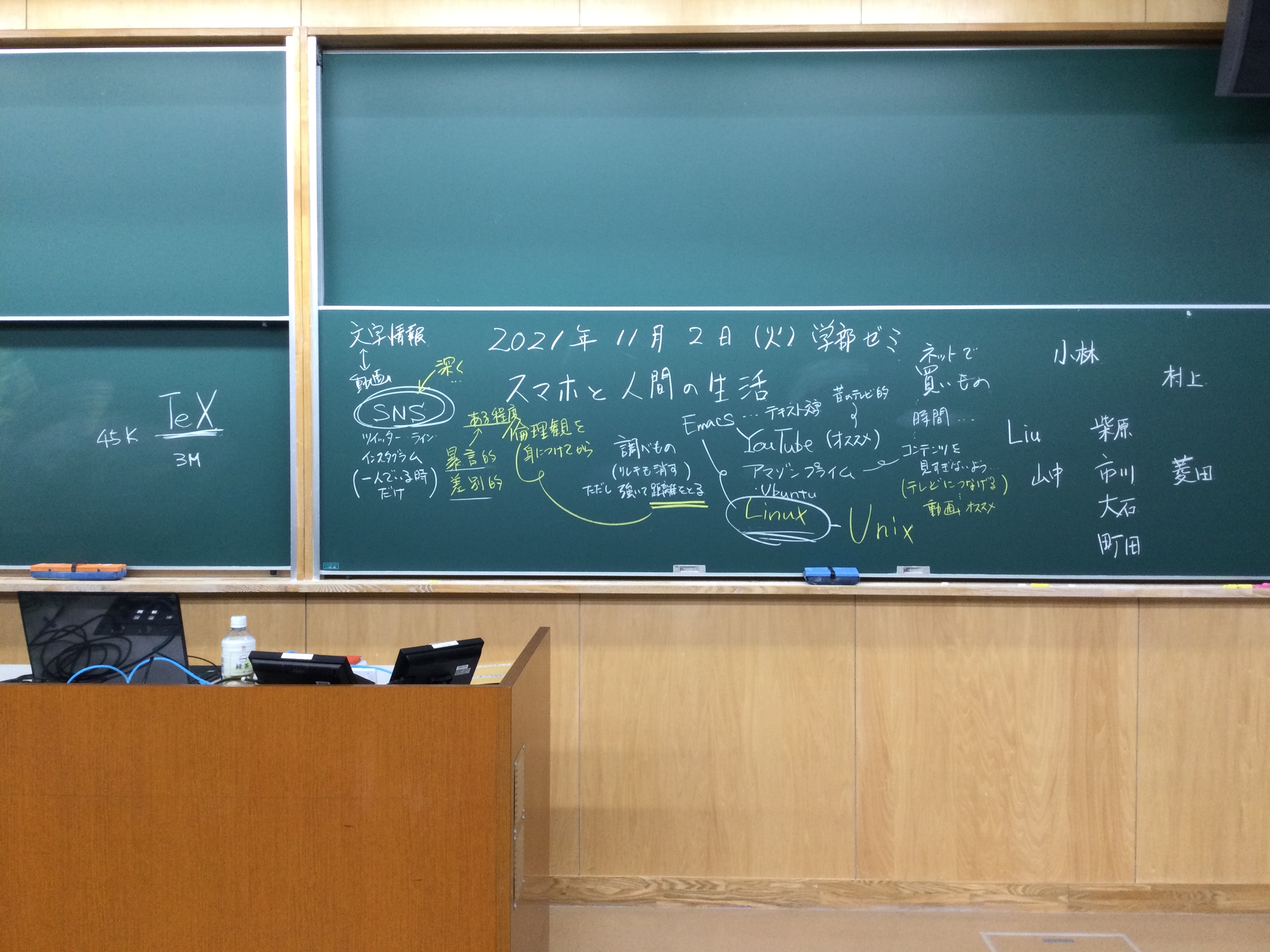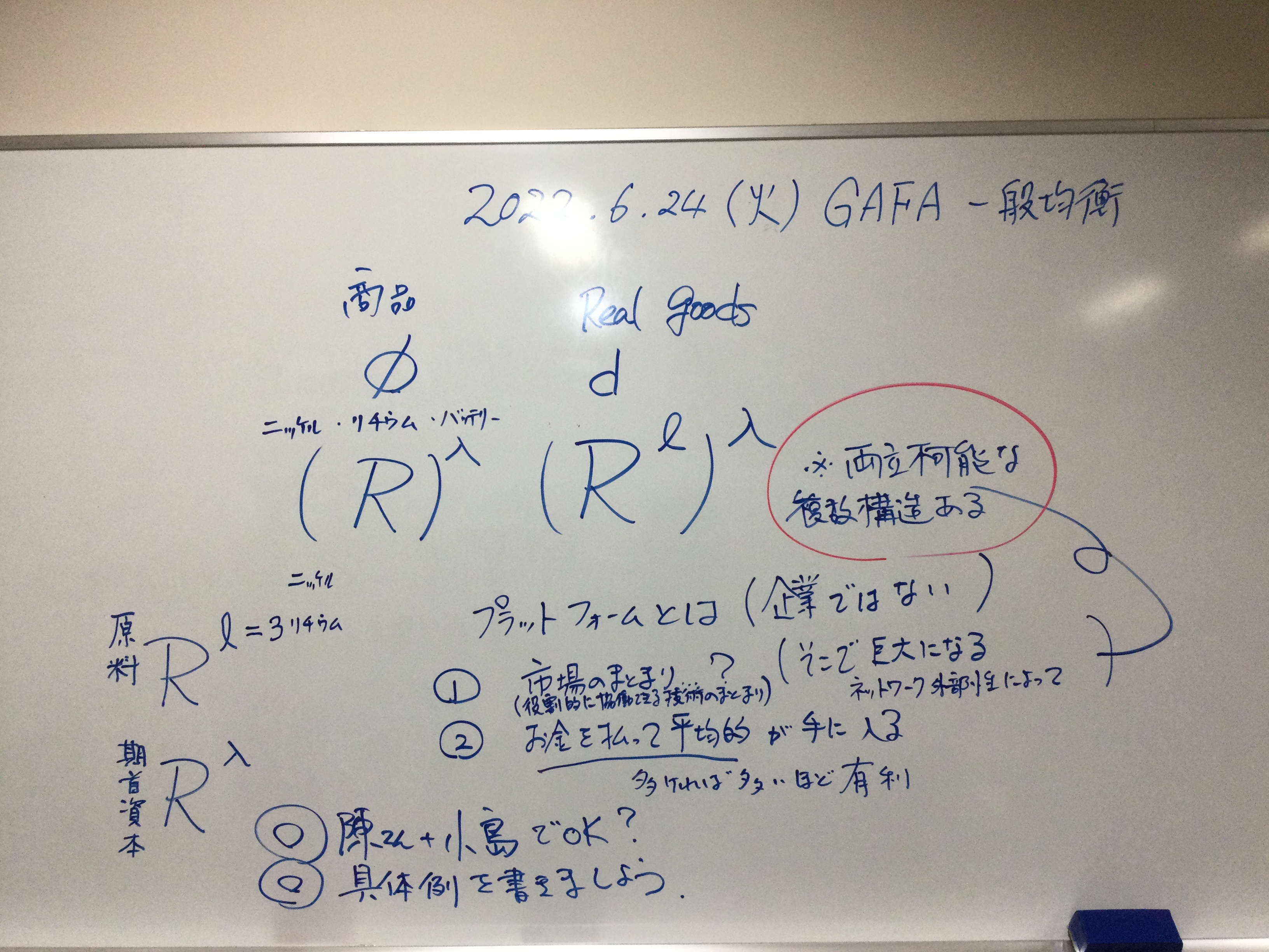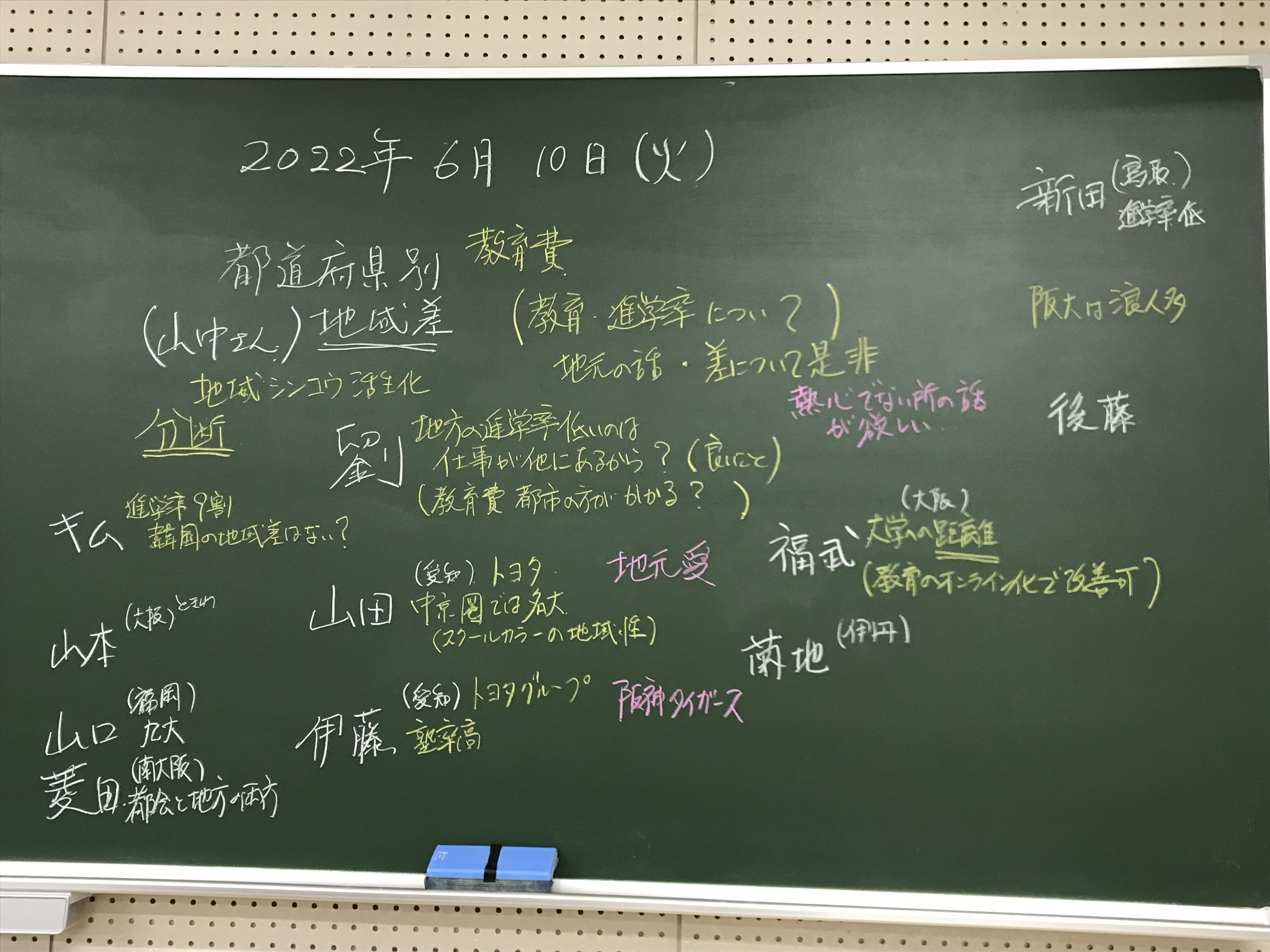 本日の板書をアップします。今日は折角対面の機会だったのに、議論の方向に上手に話を持っていくことができなくて、すみませんでした。次回5月11日(火)はオンラインになってしまいますが、柴原
