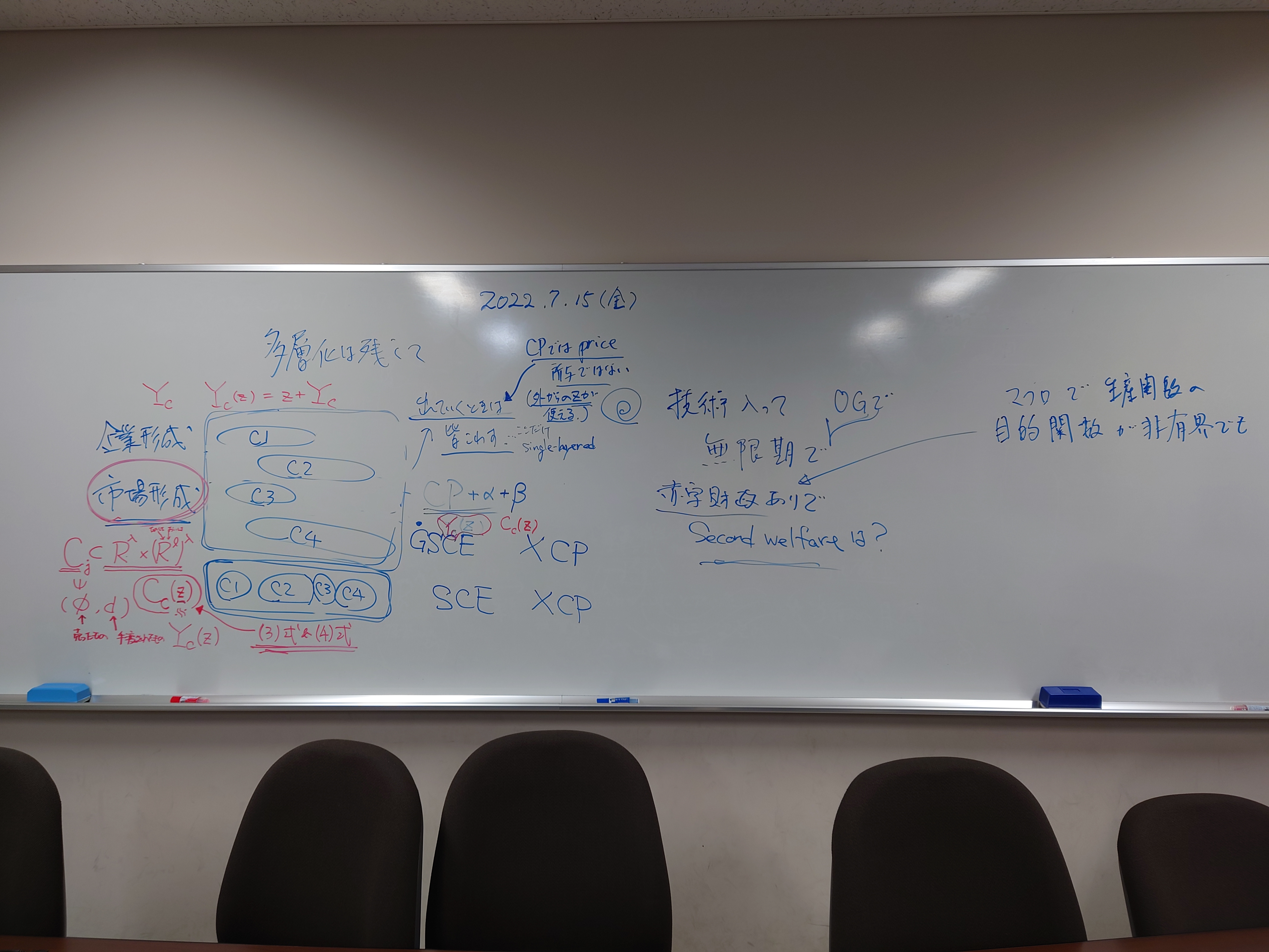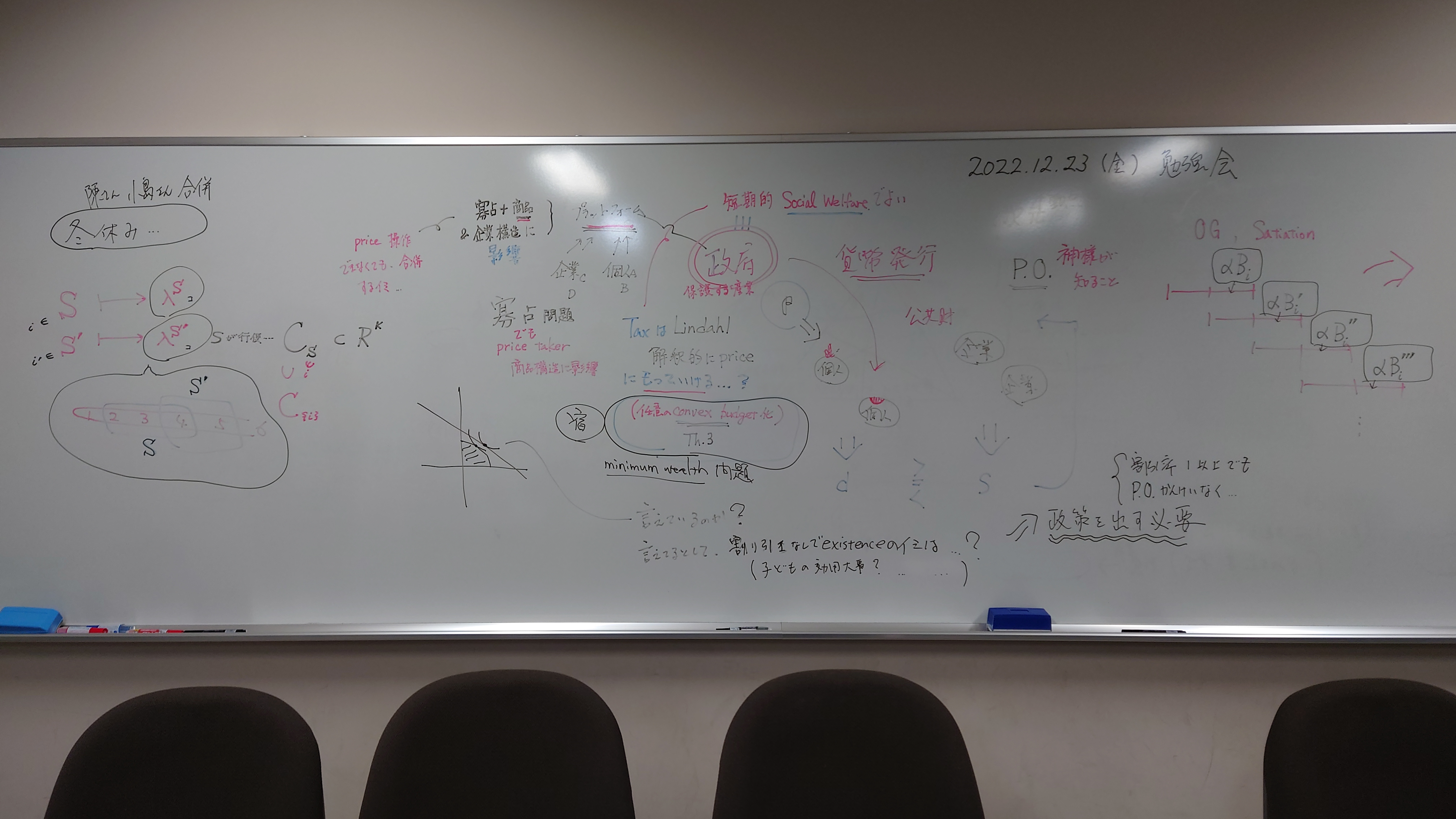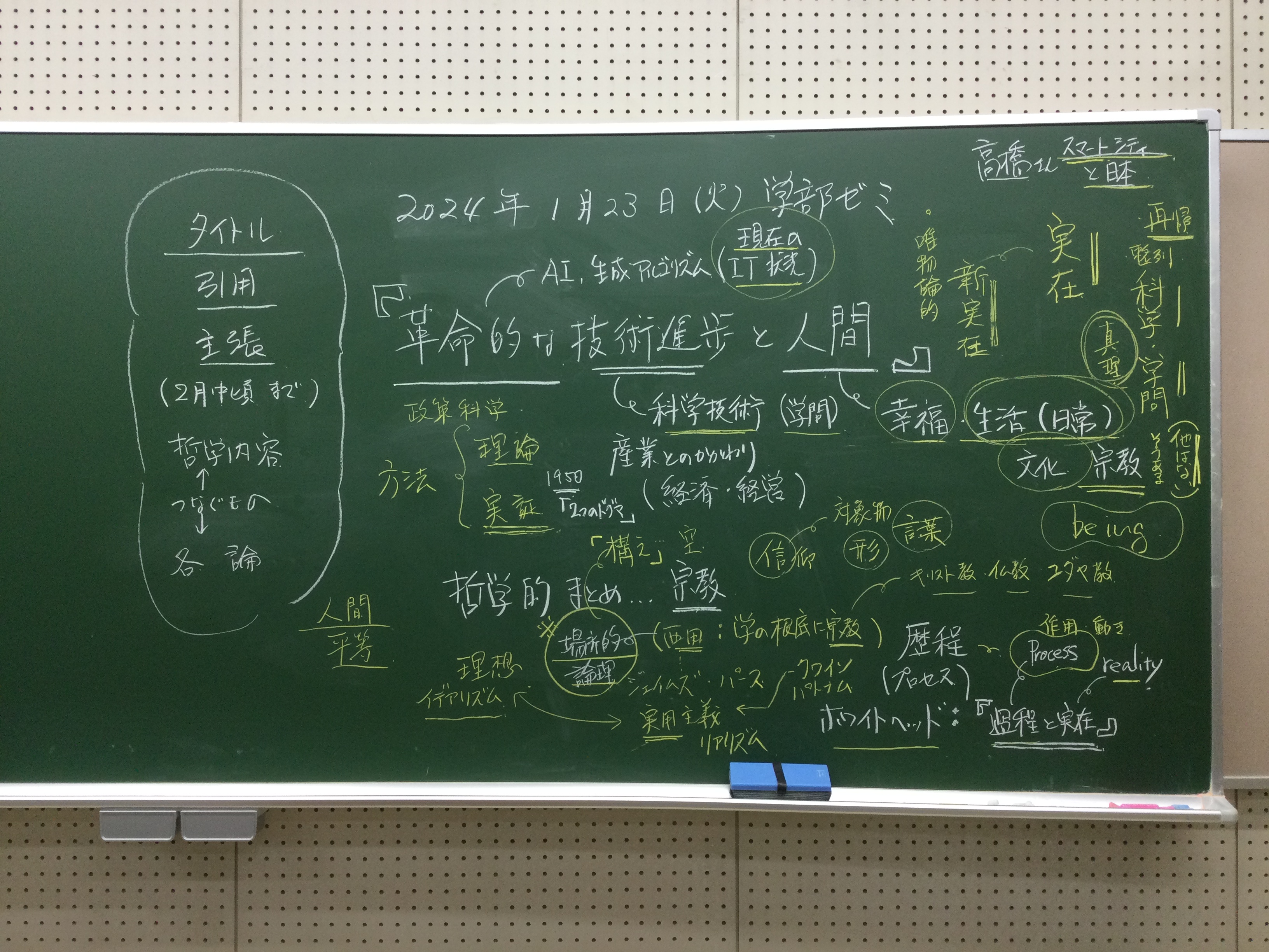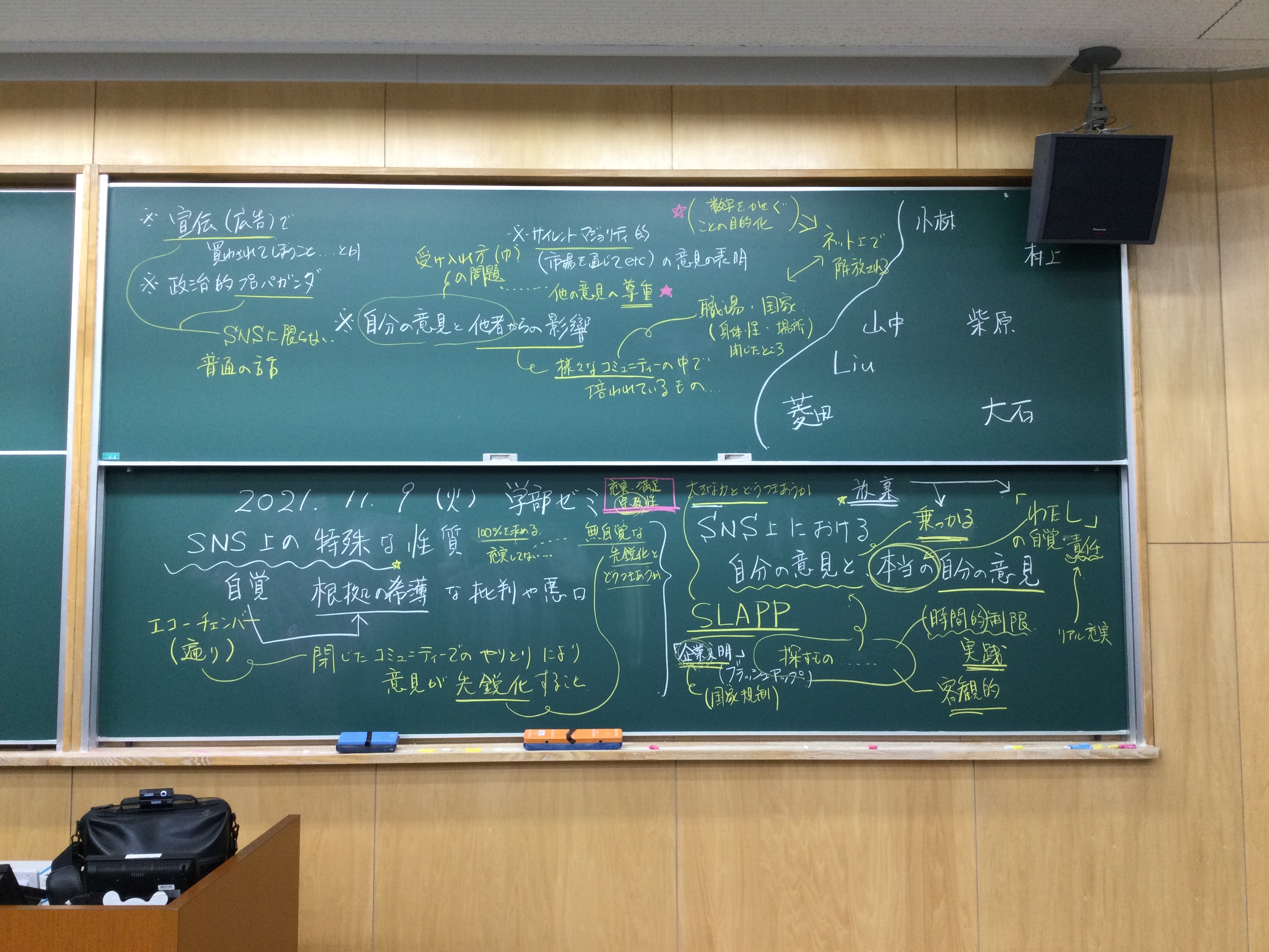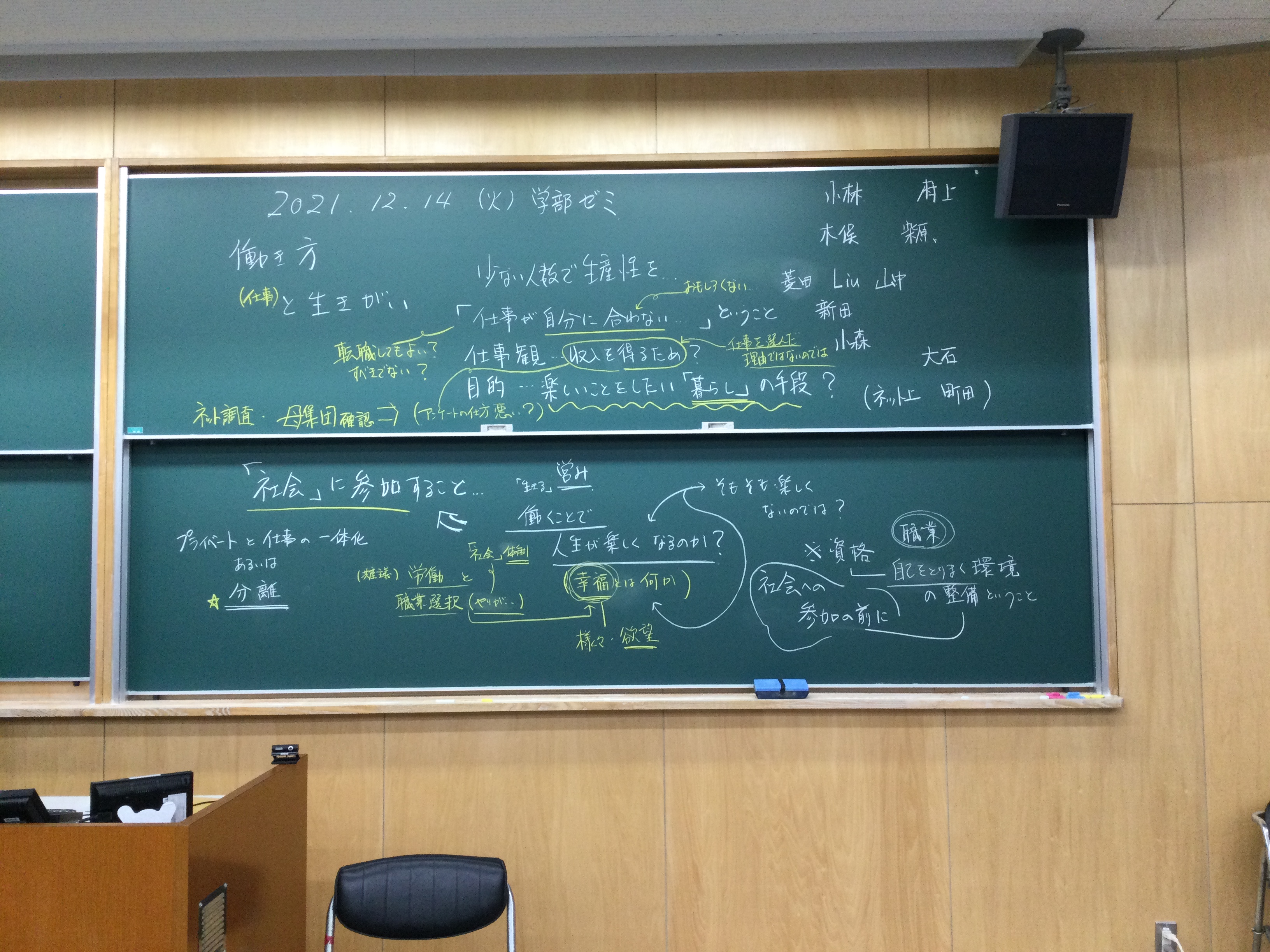 本日の板書をアップします。今日は折角対面の機会だったのに、議論の方向に上手に話を持っていくことができなくて、すみませんでした。次回5月11日(火)はオンラインになってしまいますが、柴原