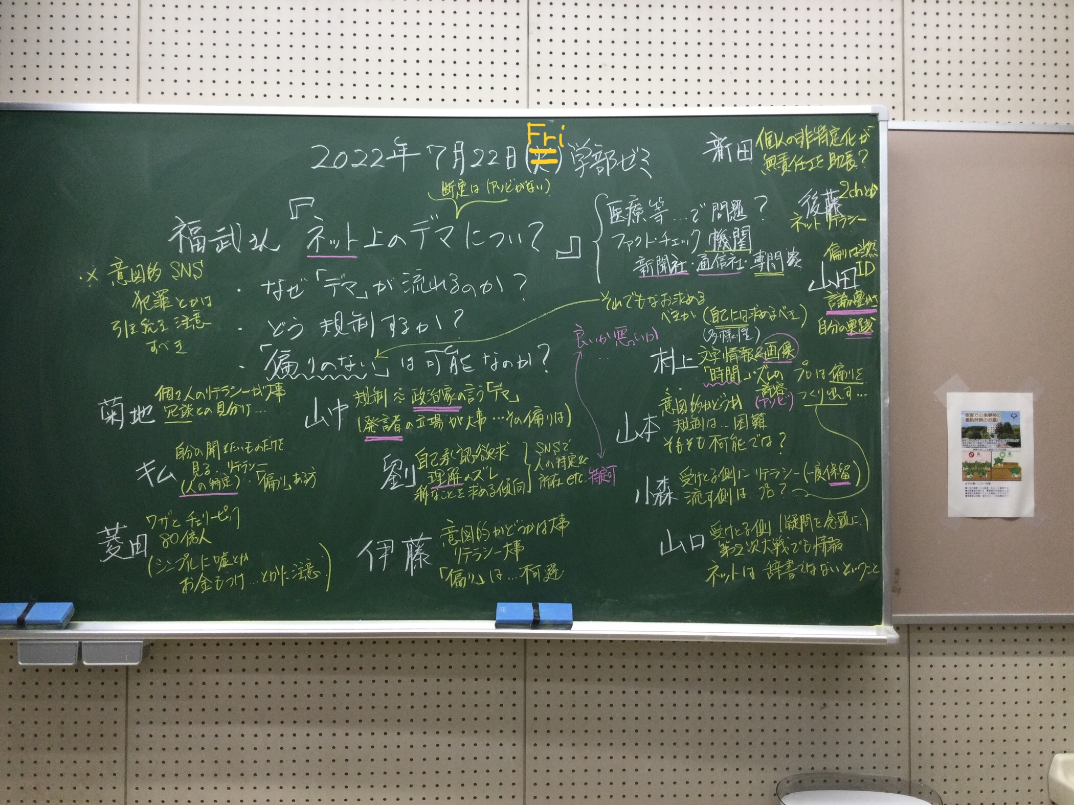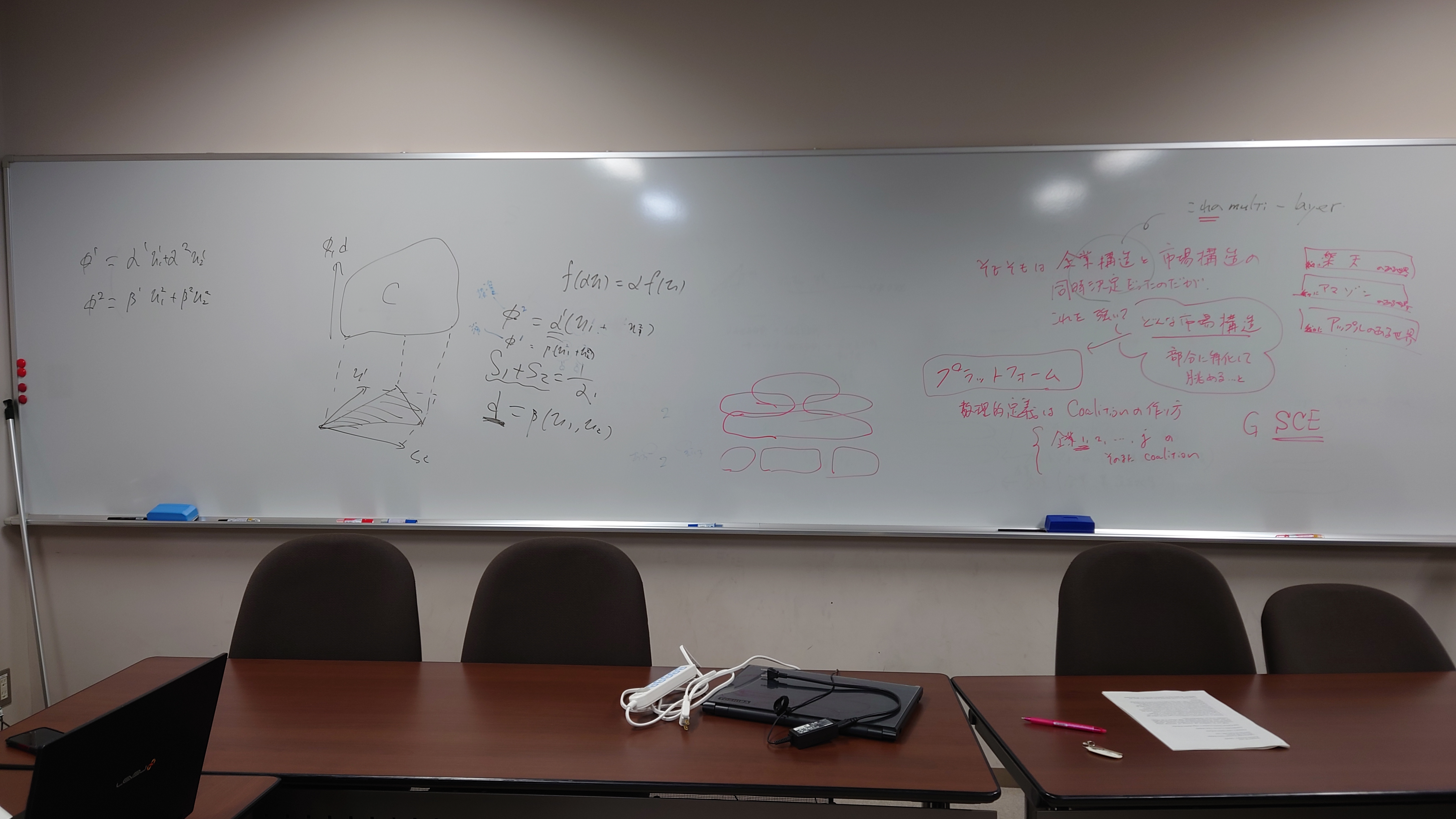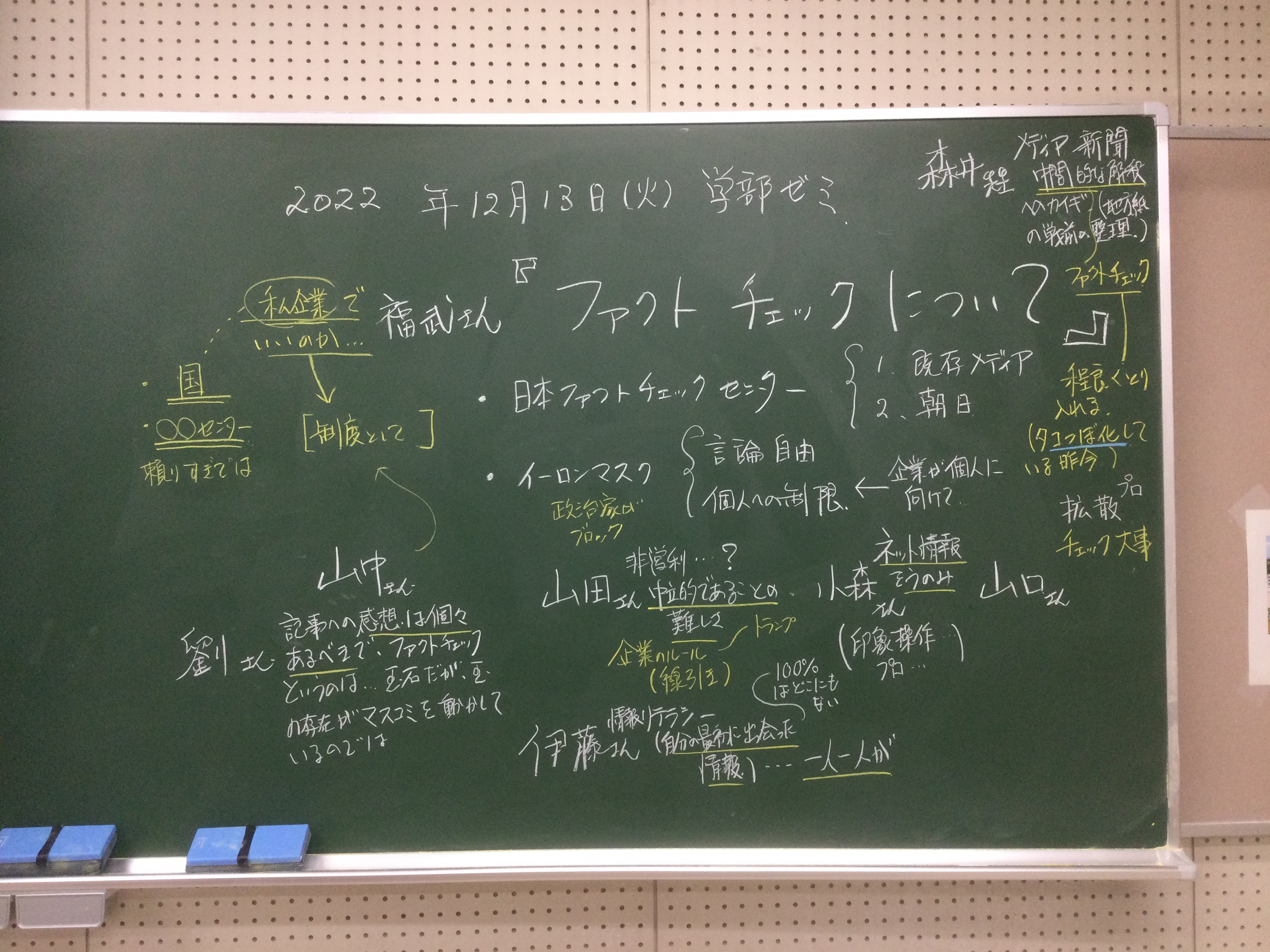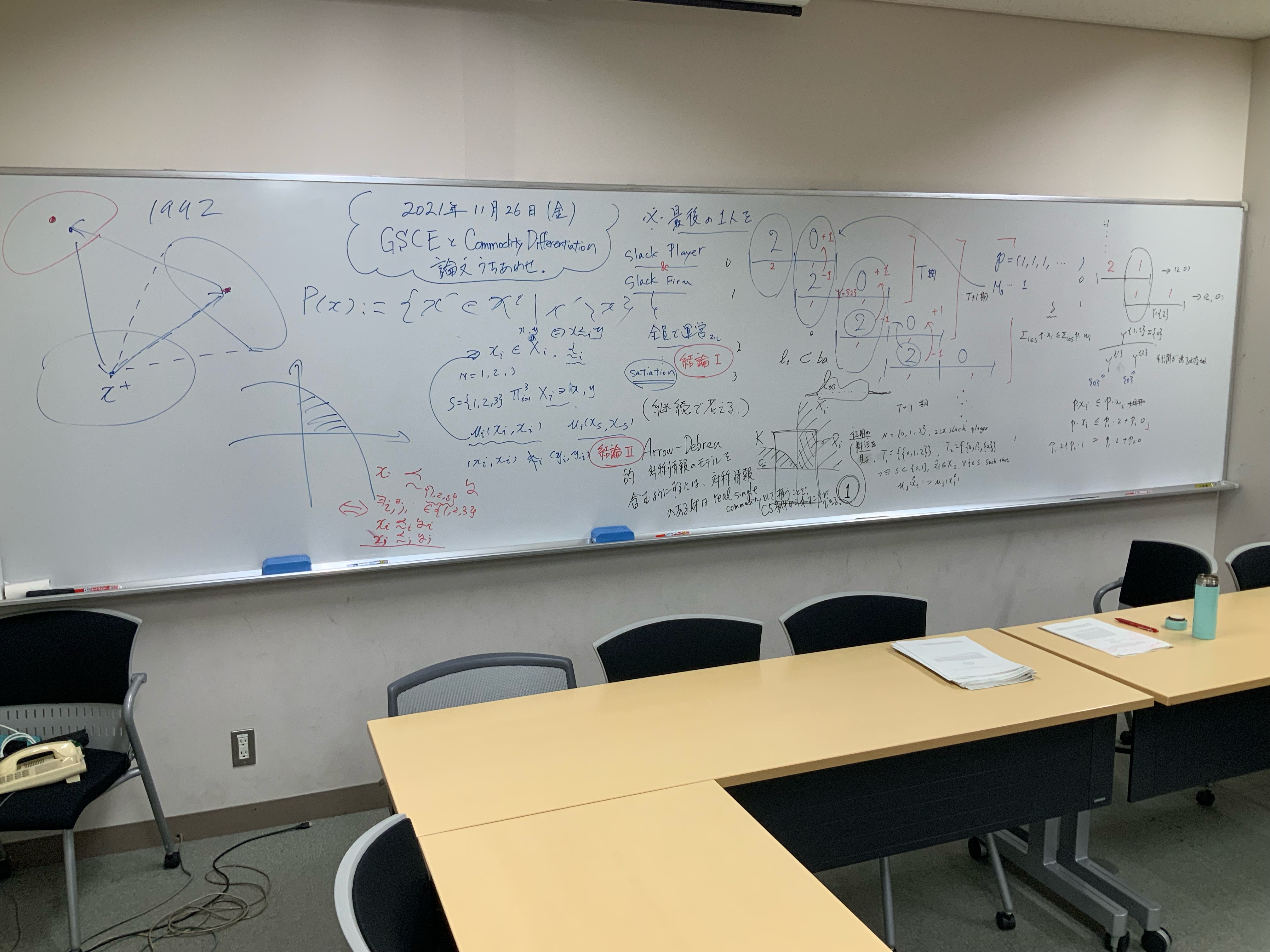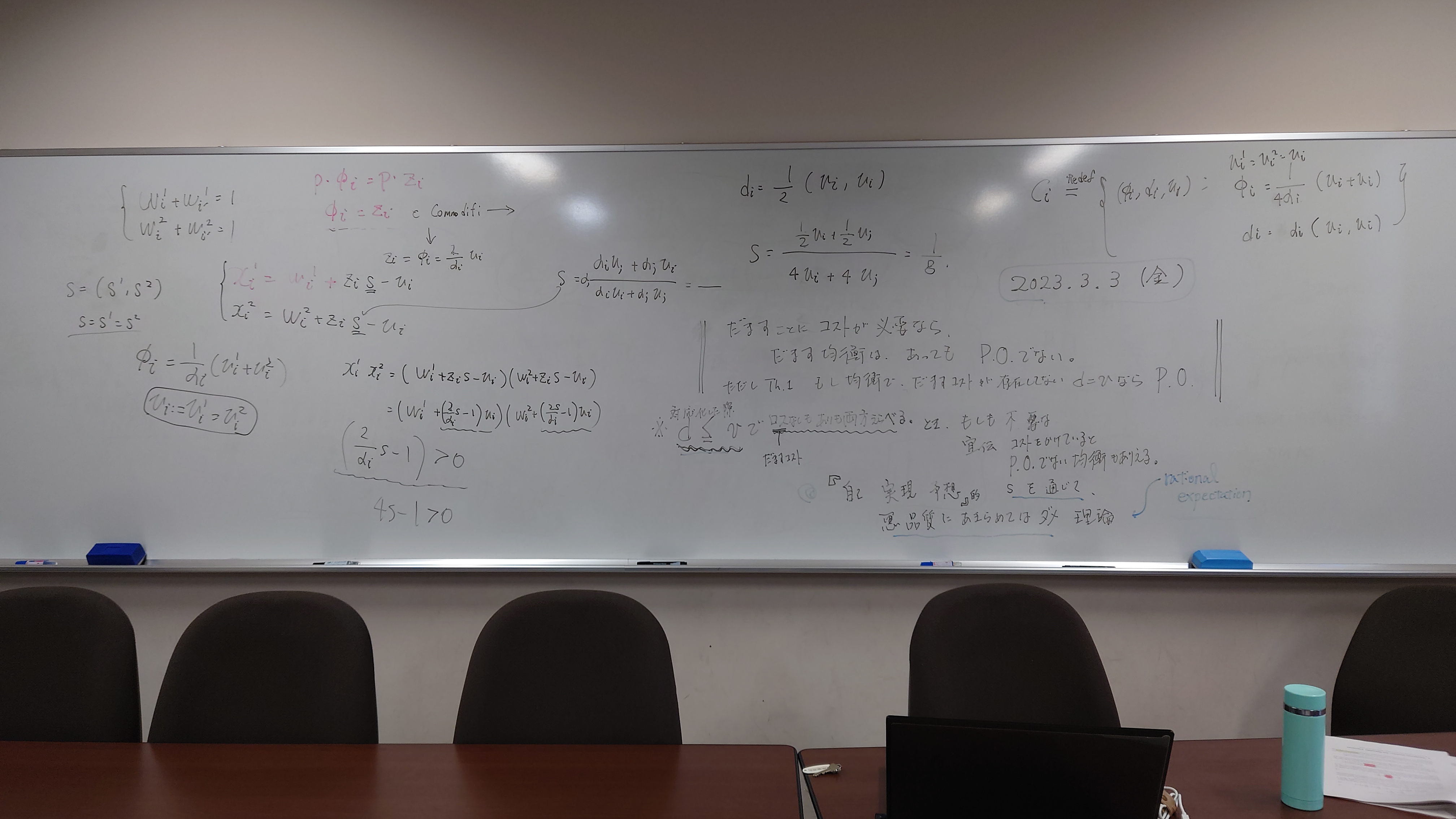 本日の板書をアップします。今日は折角対面の機会だったのに、議論の方向に上手に話を持っていくことができなくて、すみませんでした。次回5月11日(火)はオンラインになってしまいますが、柴原