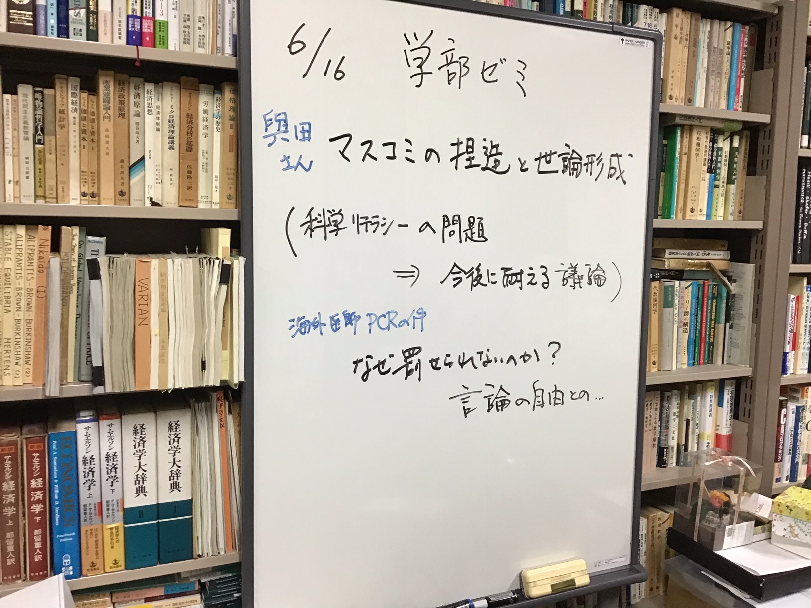 以上です。ゼミは火曜日ごとを区切りとはしますが、当面はこの掲示板で、随時進行